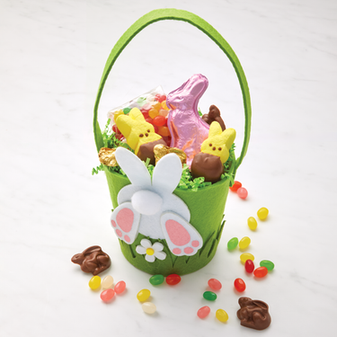 Hop into Easter with this adorable basket filled with a 2.5 oz. solid milk chocolate rabbit, two chocolate-dipped Peeps, eight milk chocolate Moon Bunnies, and a bag of gourmet jelly beans. An Easter gift designed to bring a smile to your face!