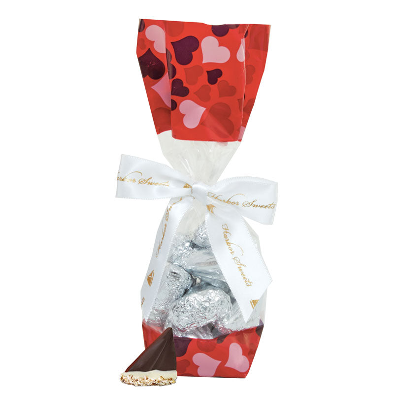This Valentine's Day bag is a simply perfect way to treat yourself and friends to the delights of our Dark Chocolate Sloops - sailboat-shaped almond buttercrunch, a mainsail and a jib of dark chocolate floating in white chocolate with pecan spindrift washing her sides! 10 Pieces