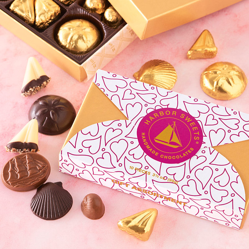 This elegant assortment is a ready-to-go-gift, filled with Sweet Sloops, milk and dark chocolates! The sweetest way to celebrate Valentine's Day!